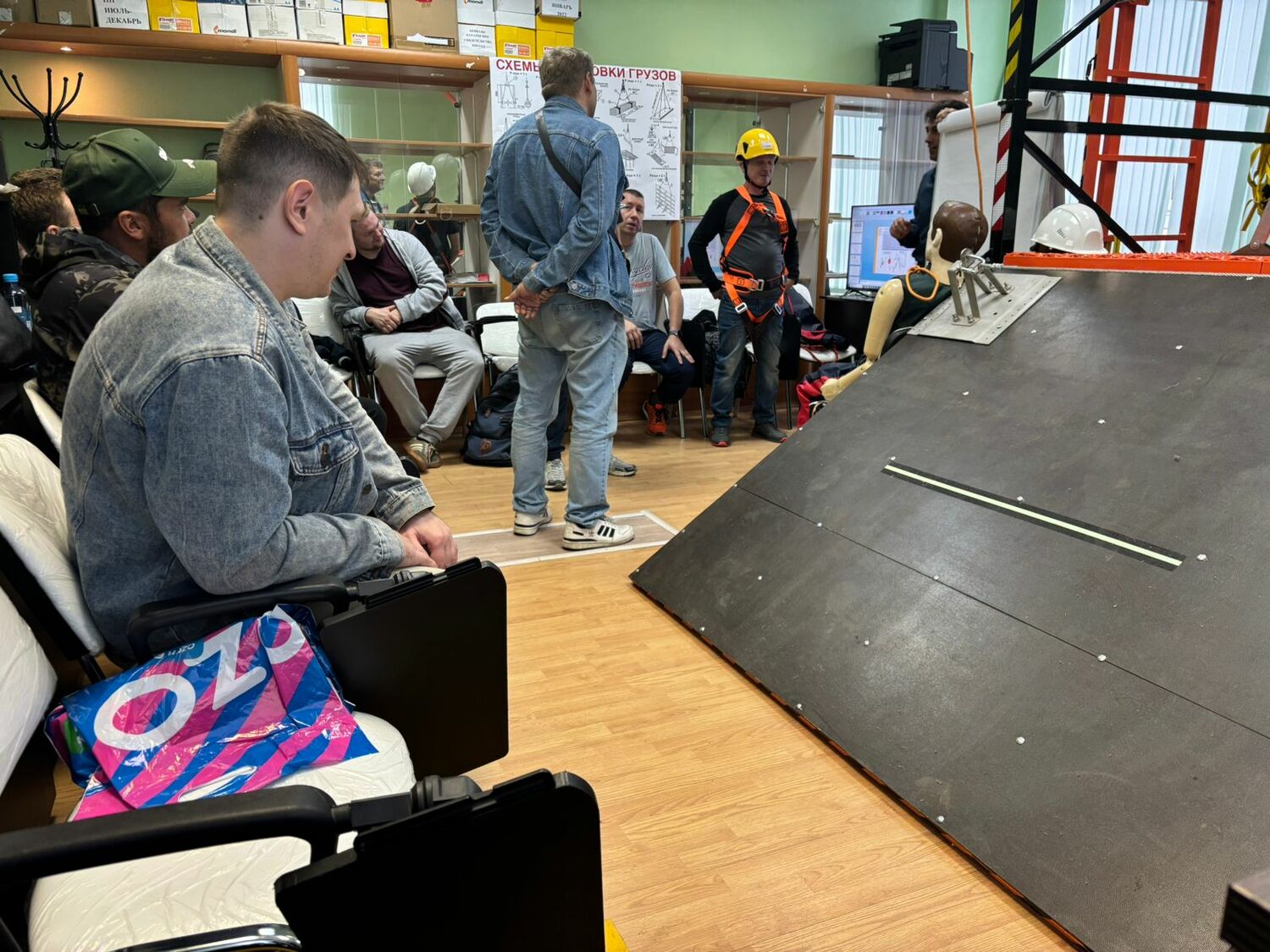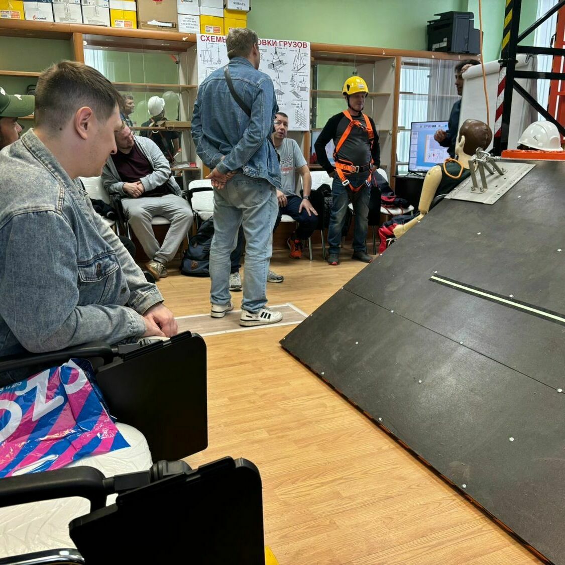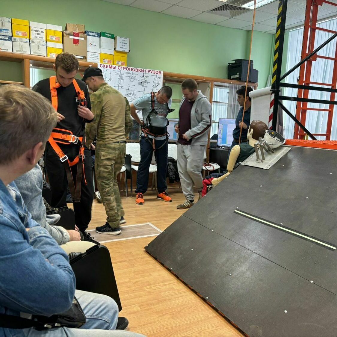 Во время практики слушатели отрабатывают реальные навыки на специально оборудованных полигонах: используются страховочные канаты, анкерные линии, строительные леса, тренажёры, имитирующие рабочие ситуации.
